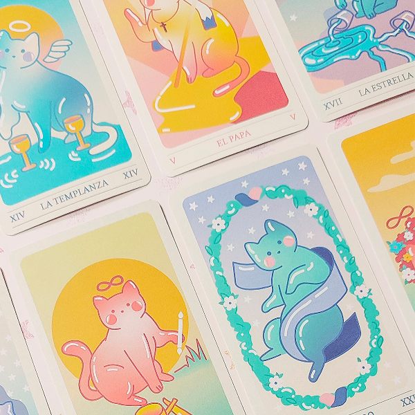Al realizar la compra no olvides aclarar el modelo elegido: gummy cats, gatos de luz, magia marina o tarot felino.